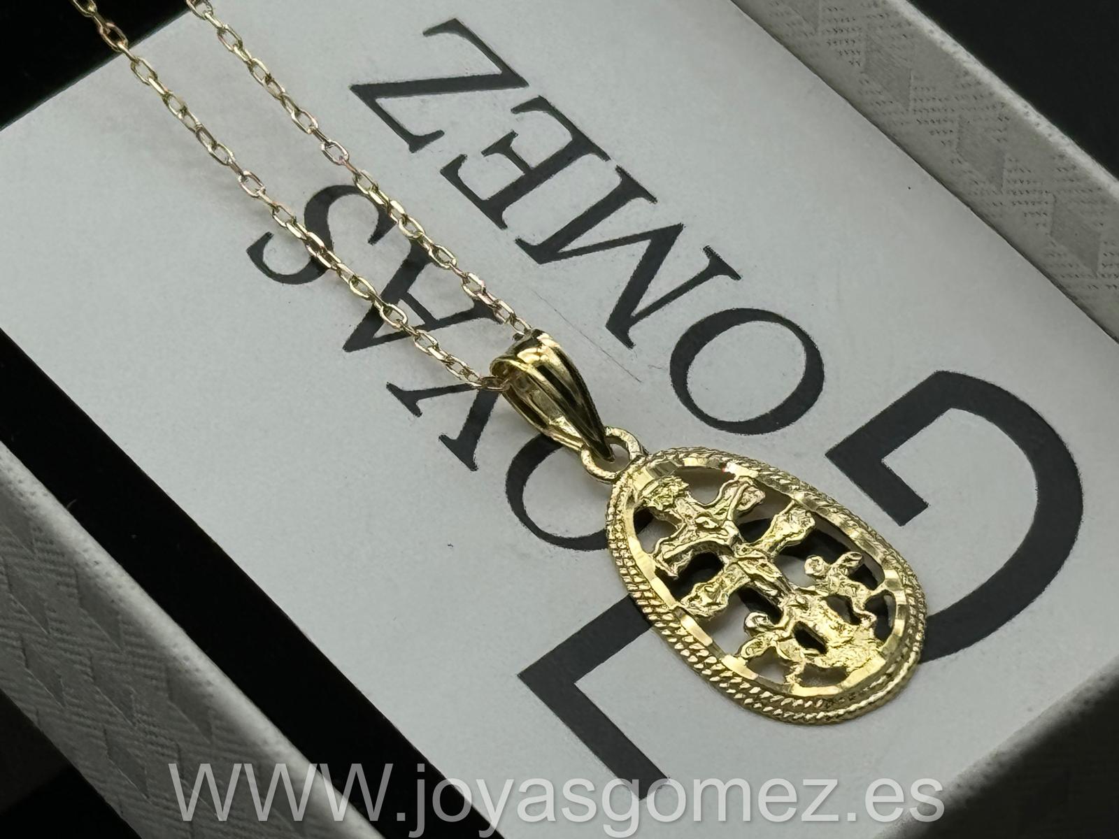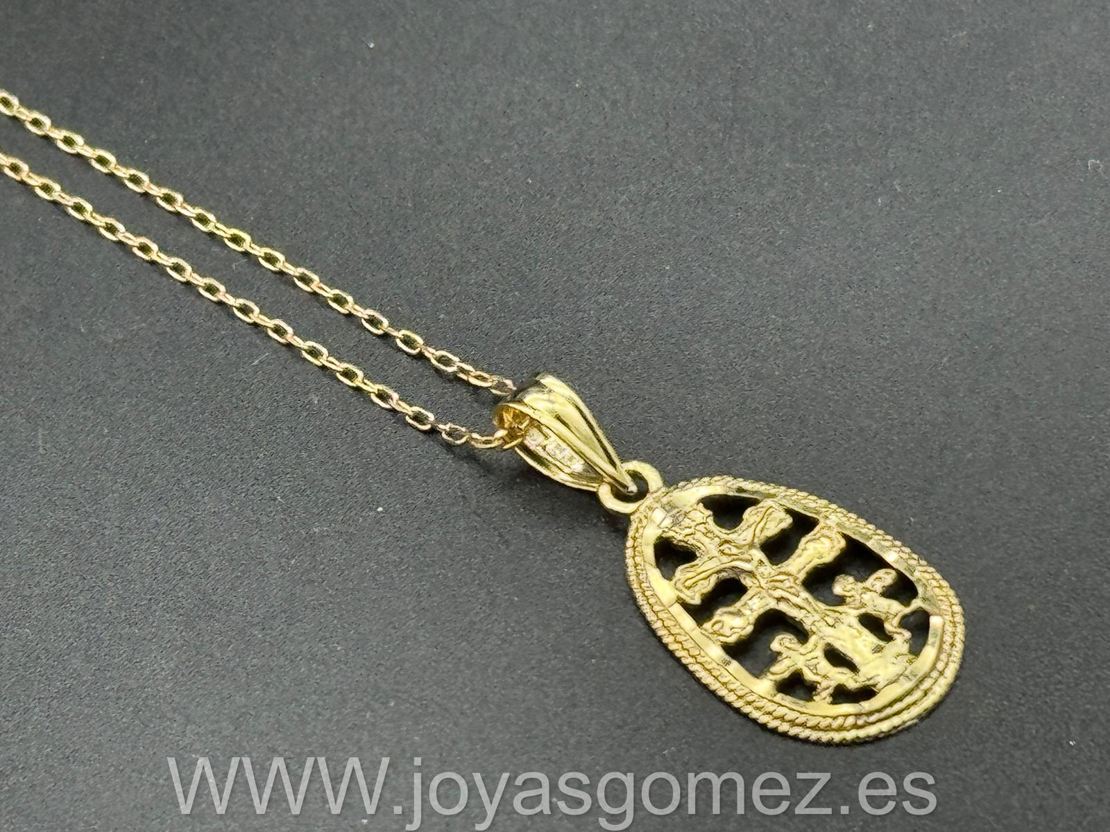 9K CADENA 50CM+ CARAVACA ORO AMARILLO CERCO 19X11 MM