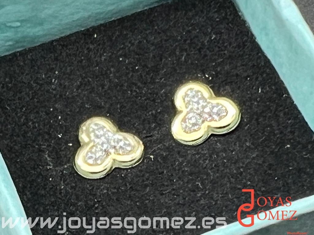 9K PENDIENTES ORO TREBOL PIEDRAS 8X8 MM CIERRE PRESION