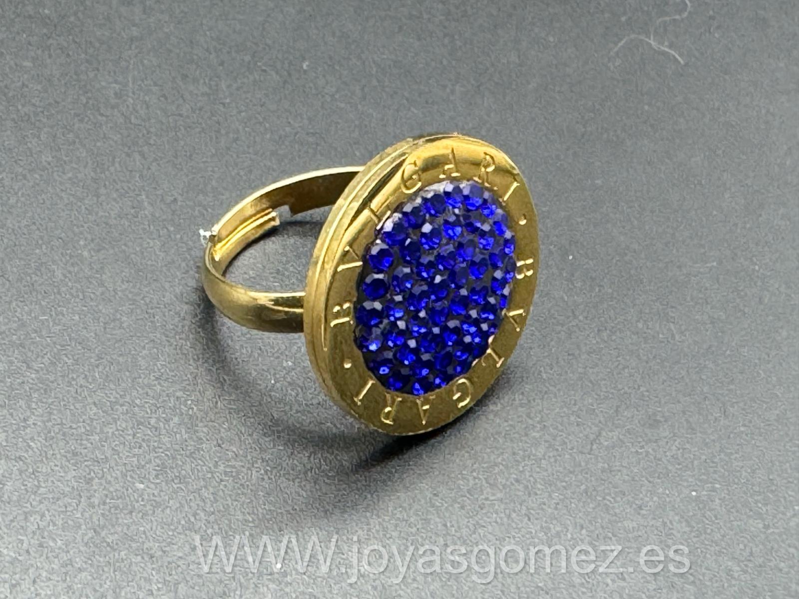 Anillo bv circonitas azul, acero 316L chapado oro 18k