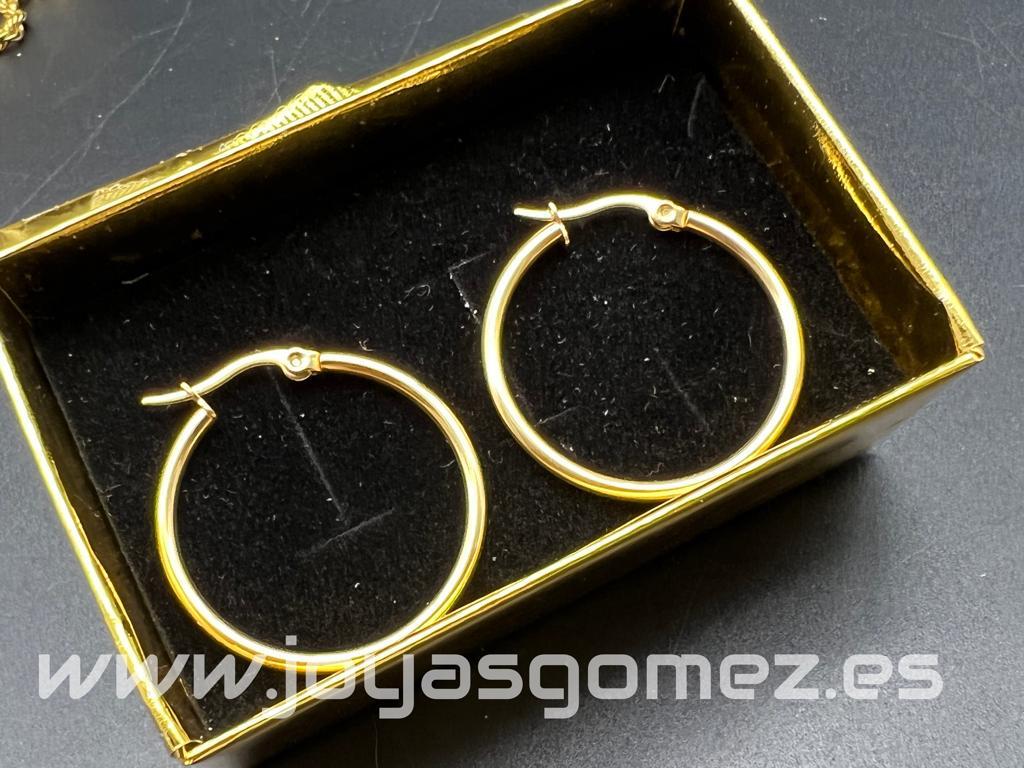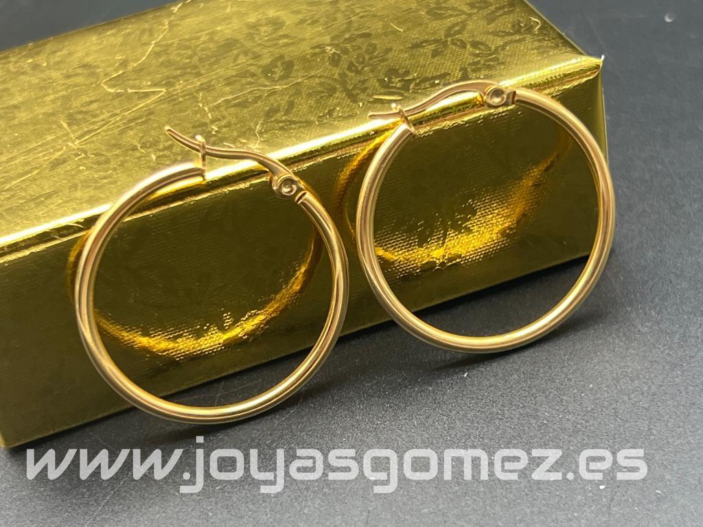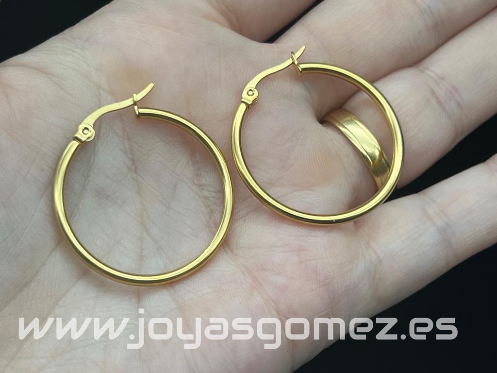 Aros lisos 3 cms, acero 316L chapado oro 18k