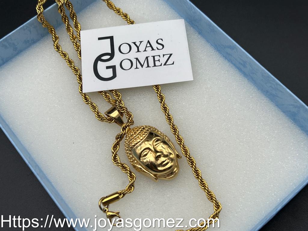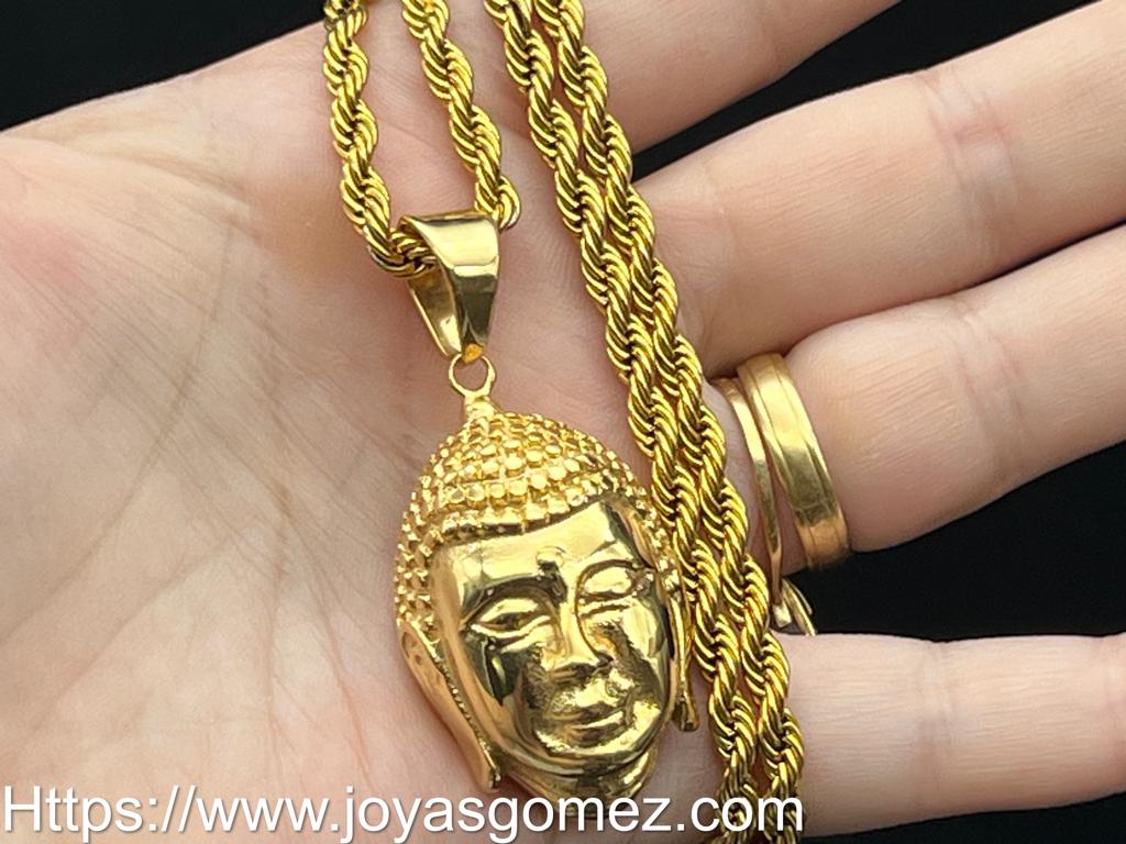Cordón 4*60cm y colgante buda, acero 316 L chapado oro 18k