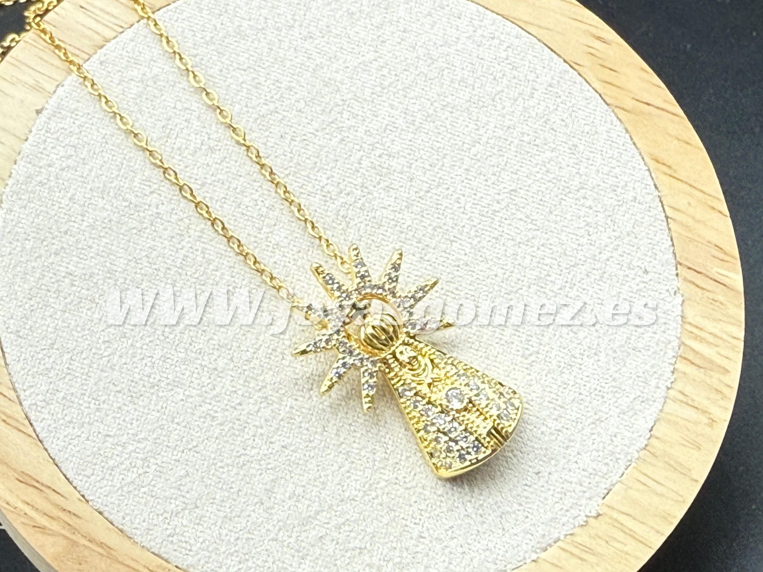 Cadena 45 cm con virgen del Pilar medida 3cm ,acero 316L chapado oro 18k