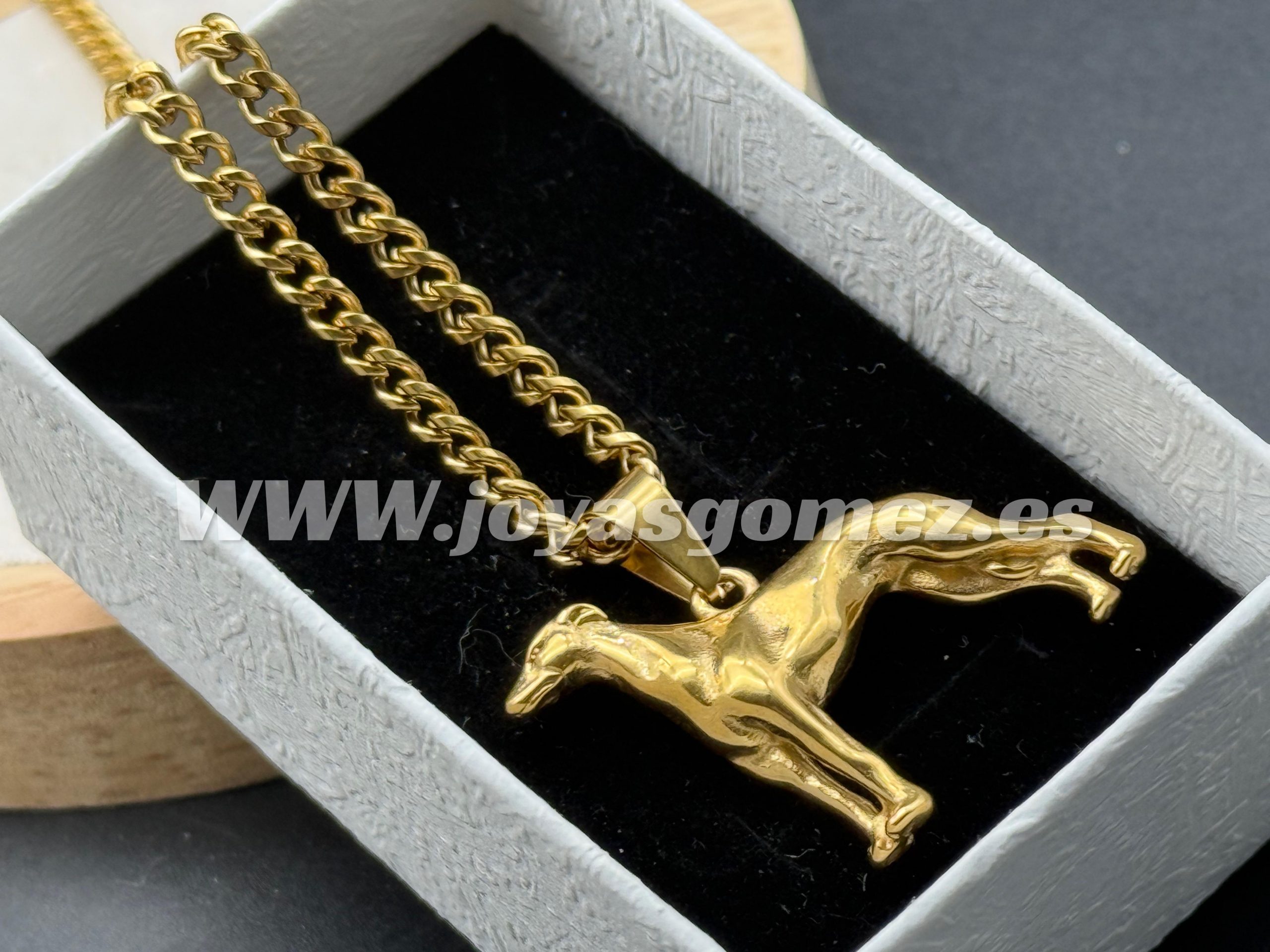Cadena 4mm*50cm – colgante galgo -acero 316L chapado oro 18k