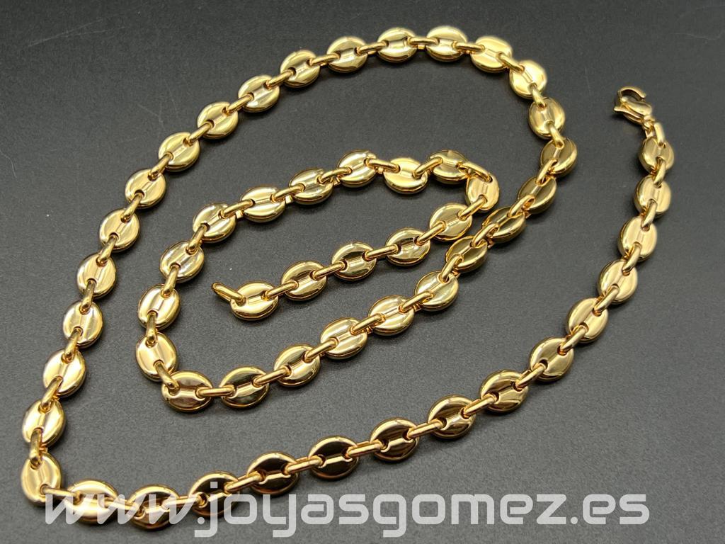 Cadena calabrotes 6mm x 60 cm, acero 316L chapado oro 18k
