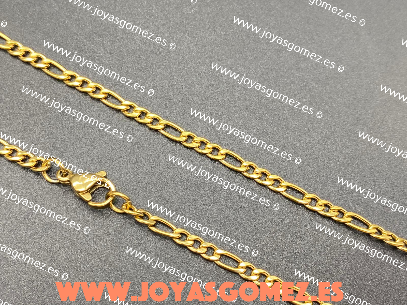Cadena 3*1,medida 3mm*60cm-acero 316L chapado oro18k
