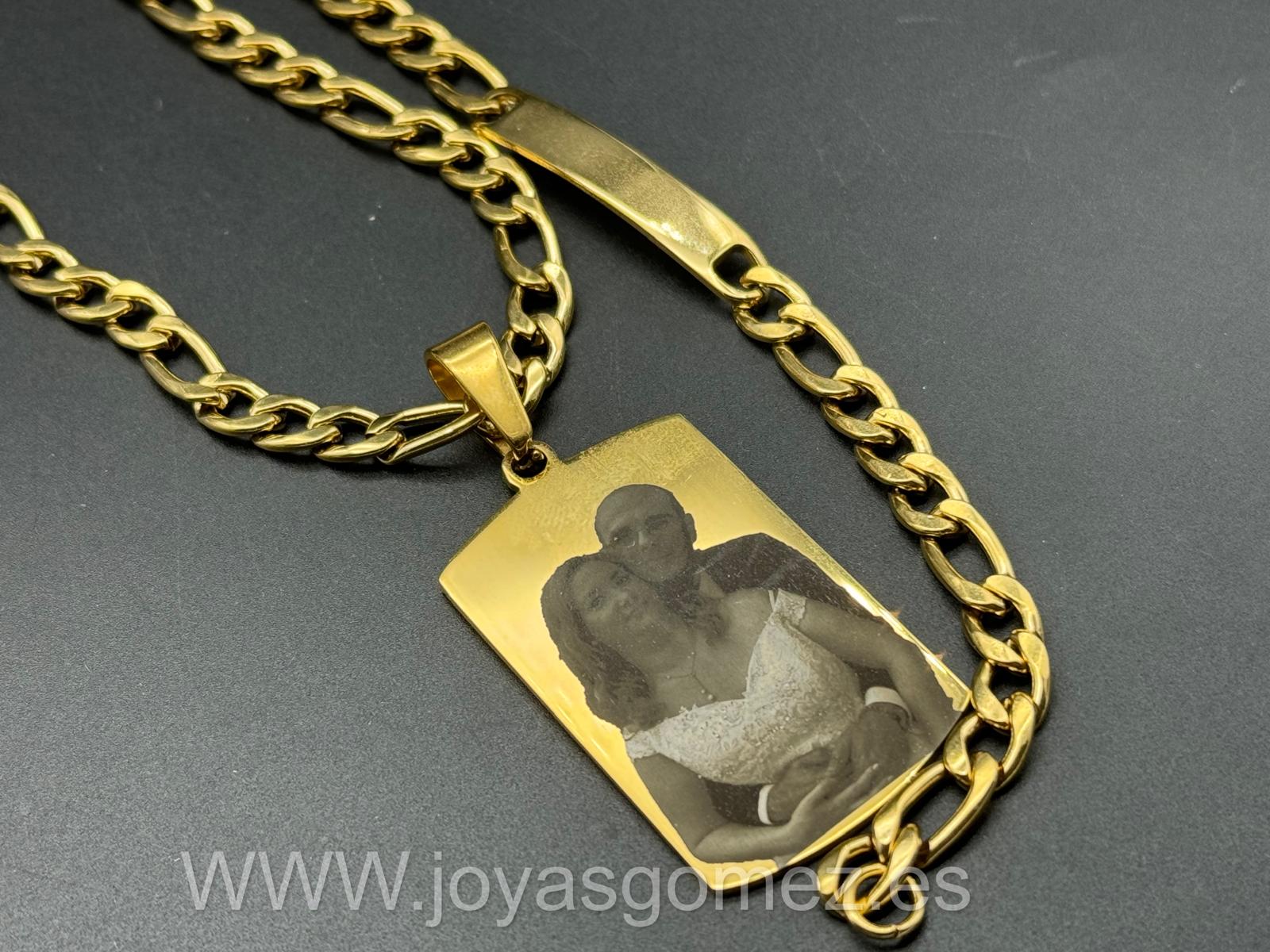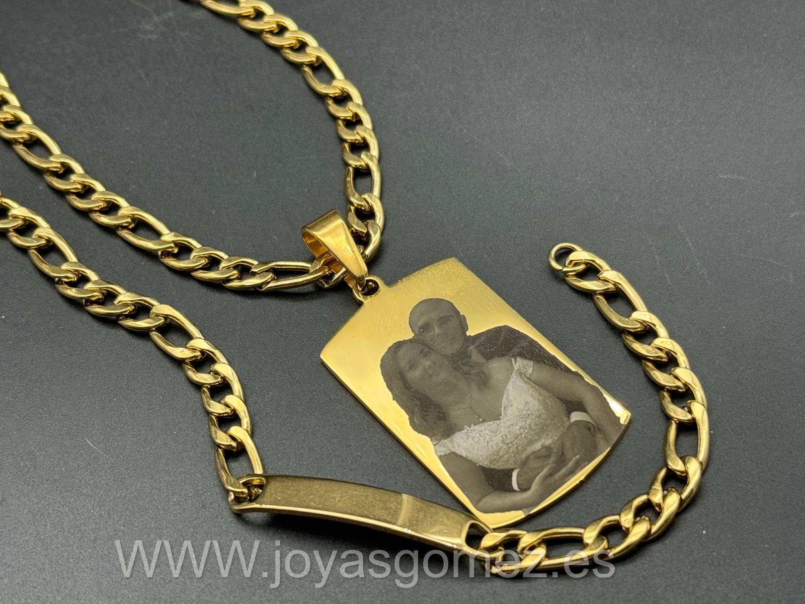 Cadena 7*60 cm- pulsera -PLACA grande 48*28 mm- foto grabación personalizada láser, acero 316L chapado oro 18k-OFERTA