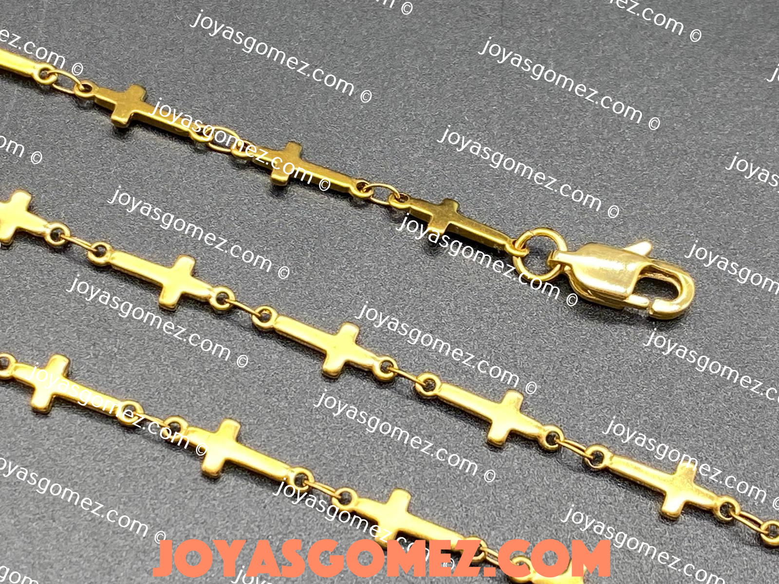 Conjunto cadena y pulsera cruces acero 316 l chapado oro 18k