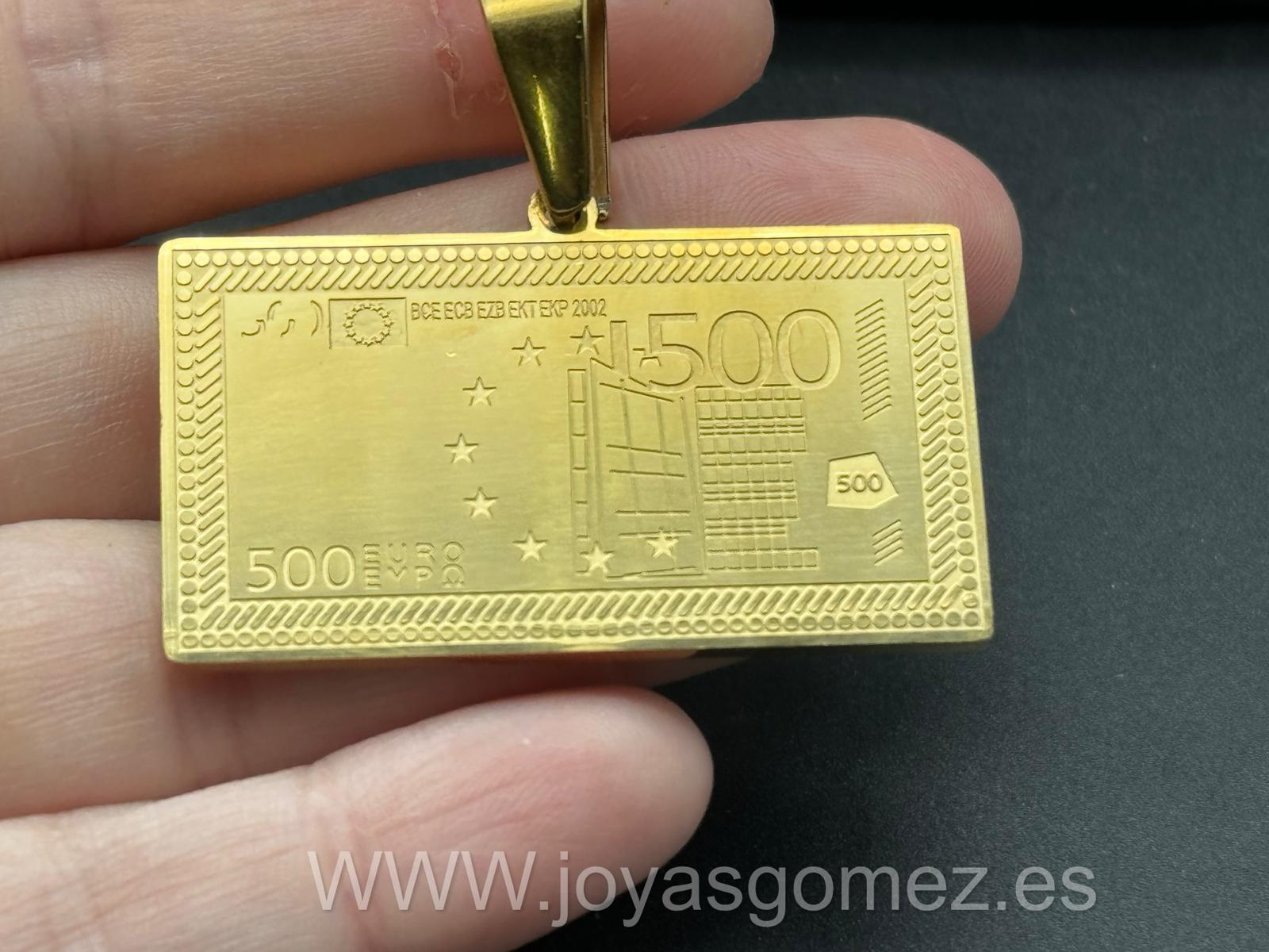 Colgante billete 500-cordón 6*60cm, acero 316 L chapado oro 18k