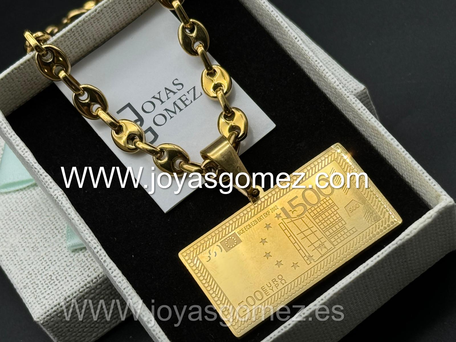 Colgante billete 500-cadena calabrotes 6*60cm, acero 316 L chapado oro 18k