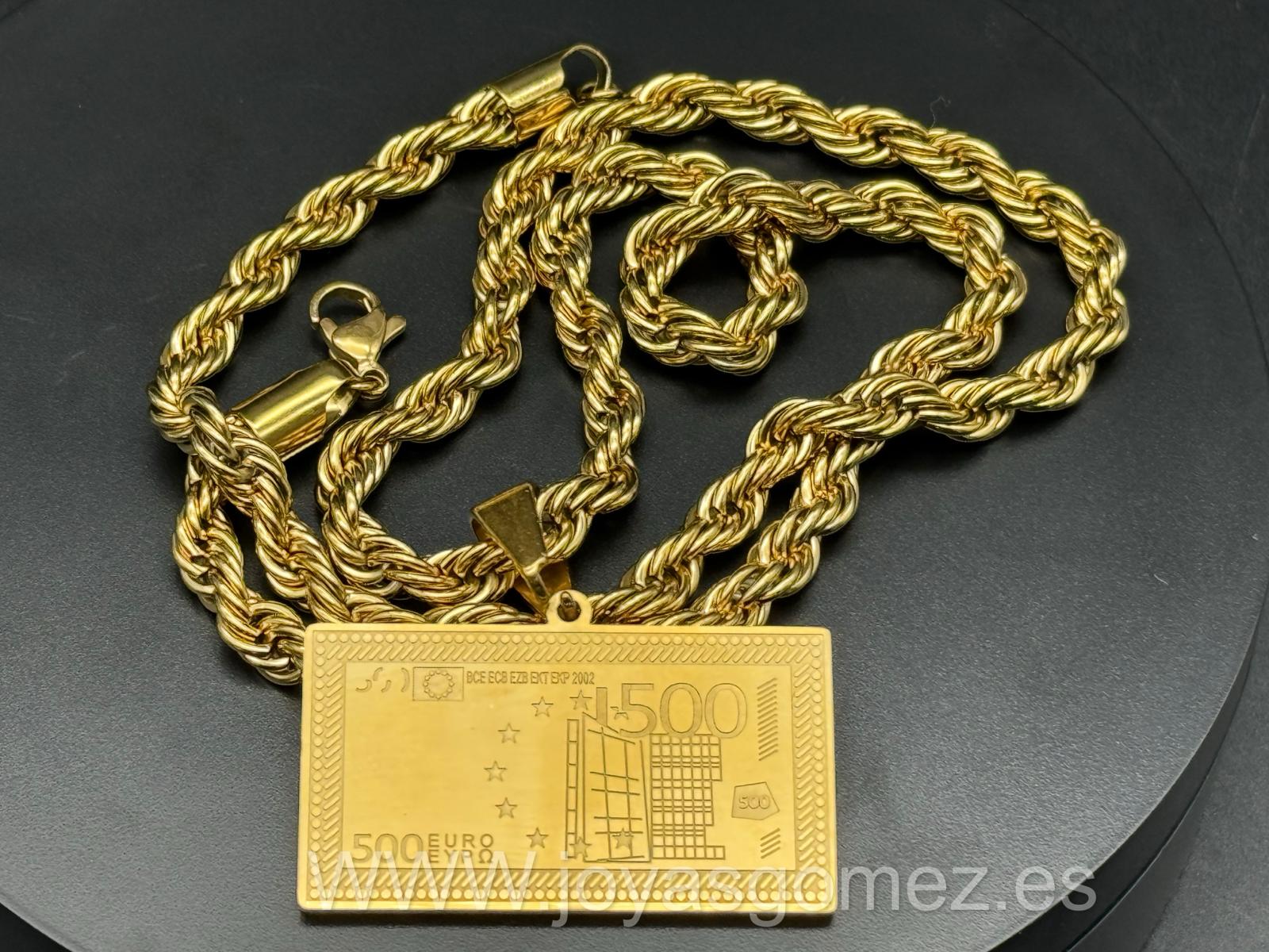 Colgante billete 500-cordón 6*60cm, acero 316 L chapado oro 18k