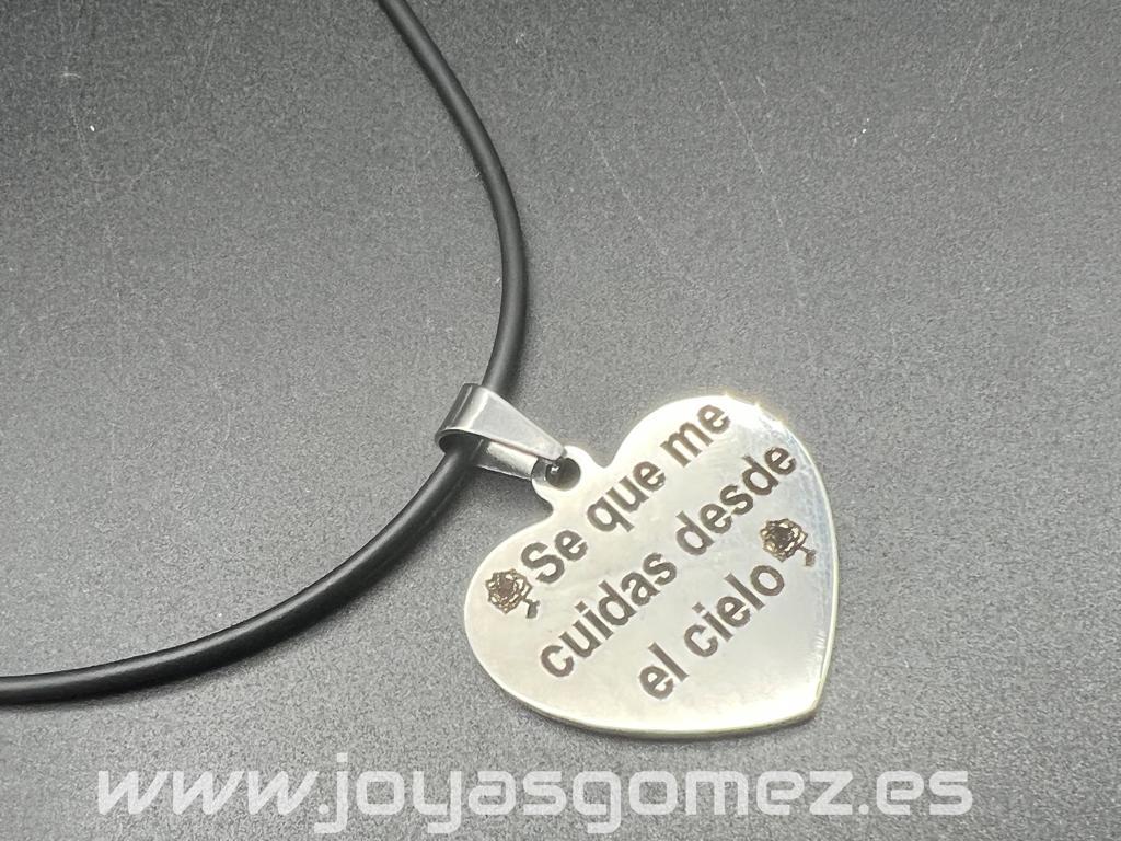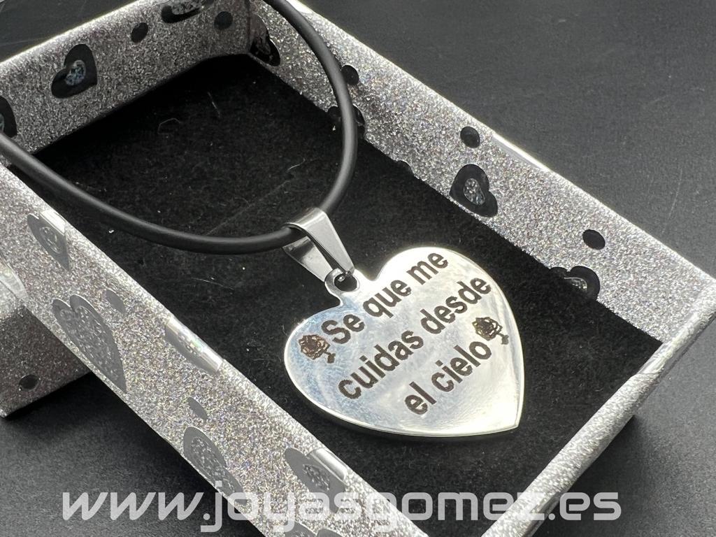 Corazón 25*30mm+ cordón caucho, grabado láser, acero 316L (texto incluido)