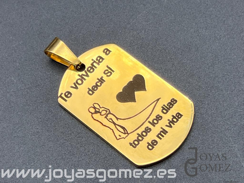Colgante placa 36*22 mm, grabado láser, acero 316L chapado oro 18k (texto incluido)