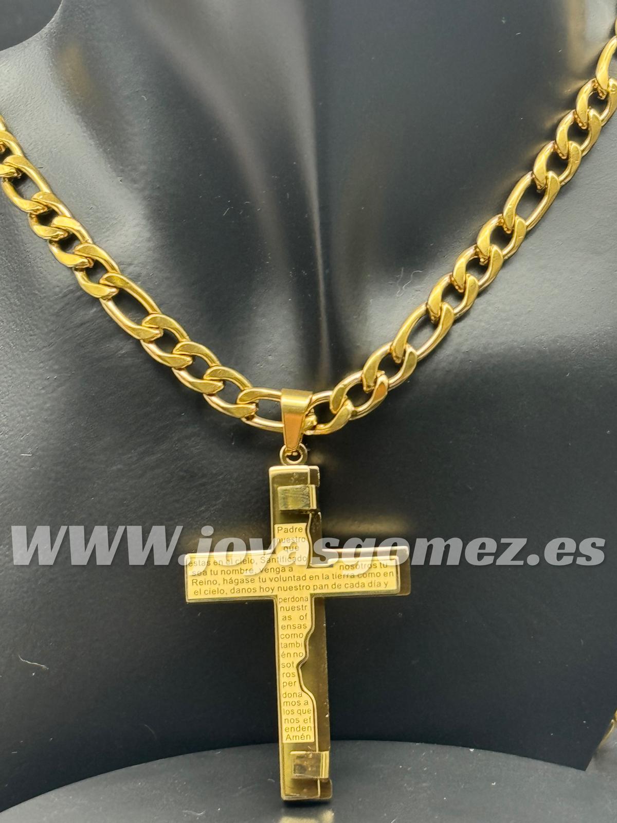 Colgante cruz inscripción padre nuestro-cadena 7*60cm, acero 316 L chapado oro 18k