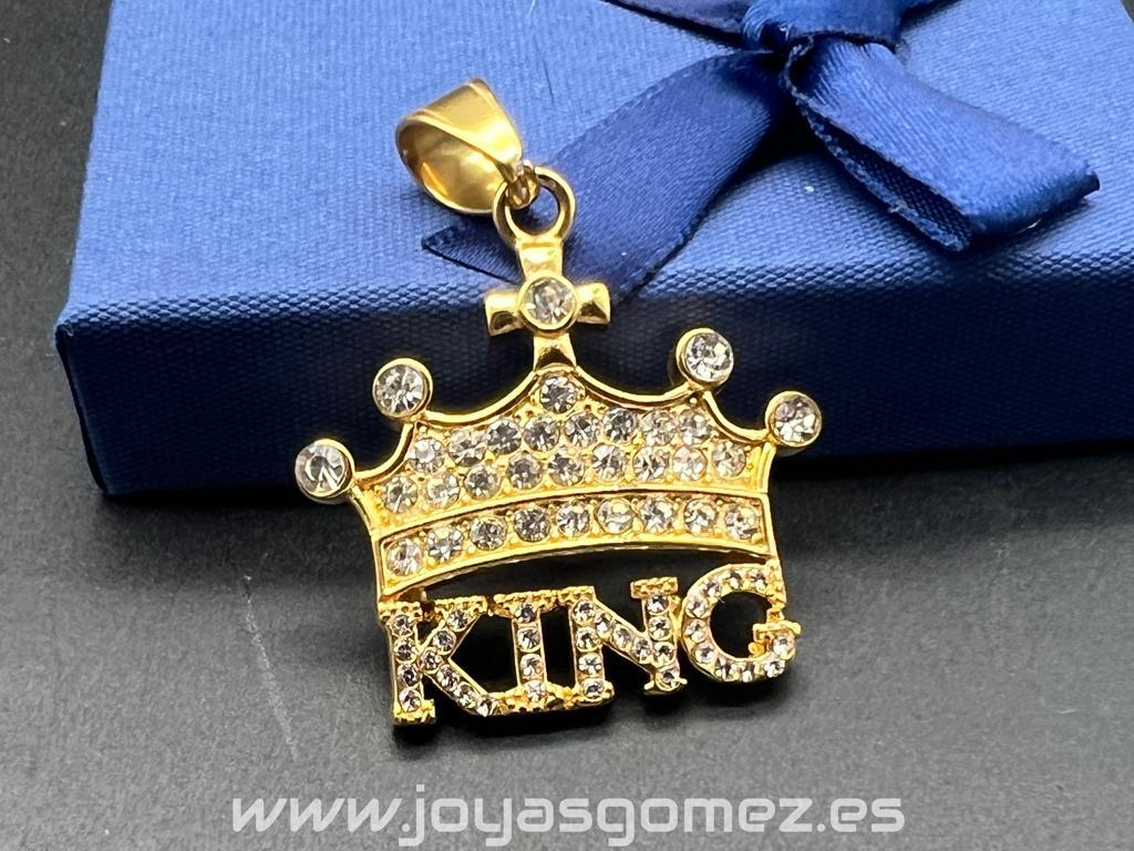 Colgante corona circonitas KING, acero 316L chapado oro 18k