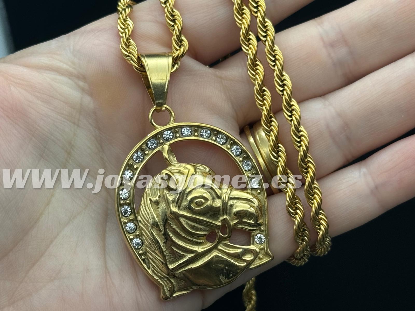 cordón 4 mm*60cm y colgante herradura ,acero 316L chapado oro 18k