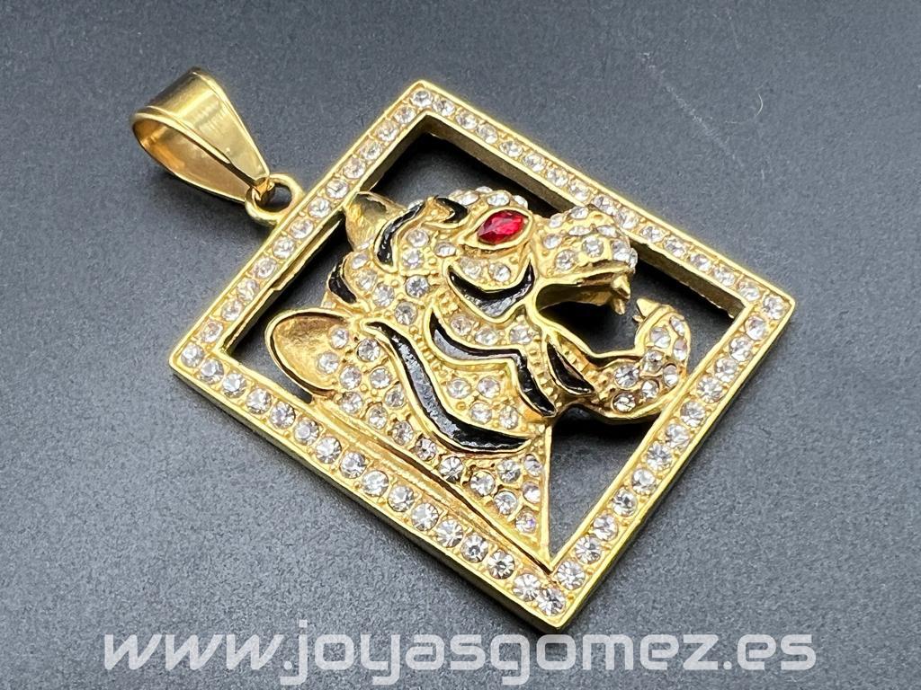 Colgante tigre circonitas, acero 316L chapado oro 18k