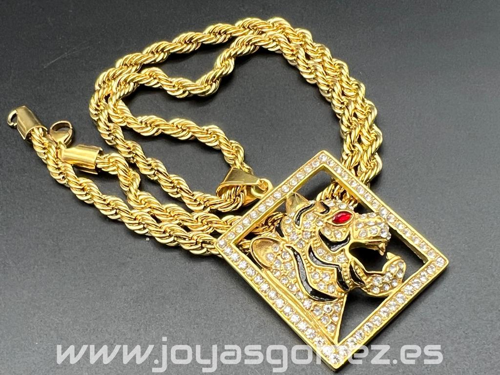 Colgante tigre circonitas+cordón 6*60cm- acero 316 L chapado oro 18k