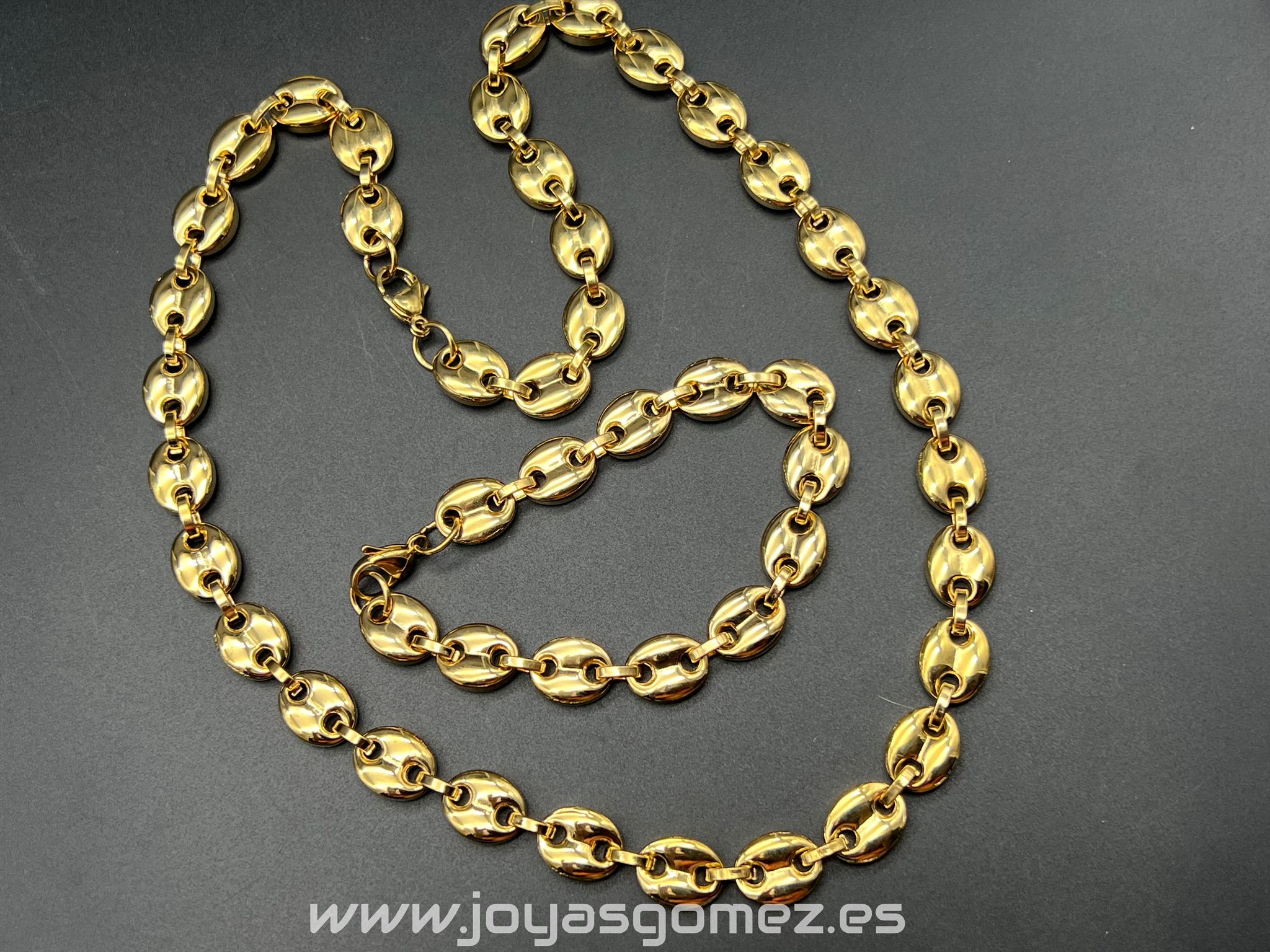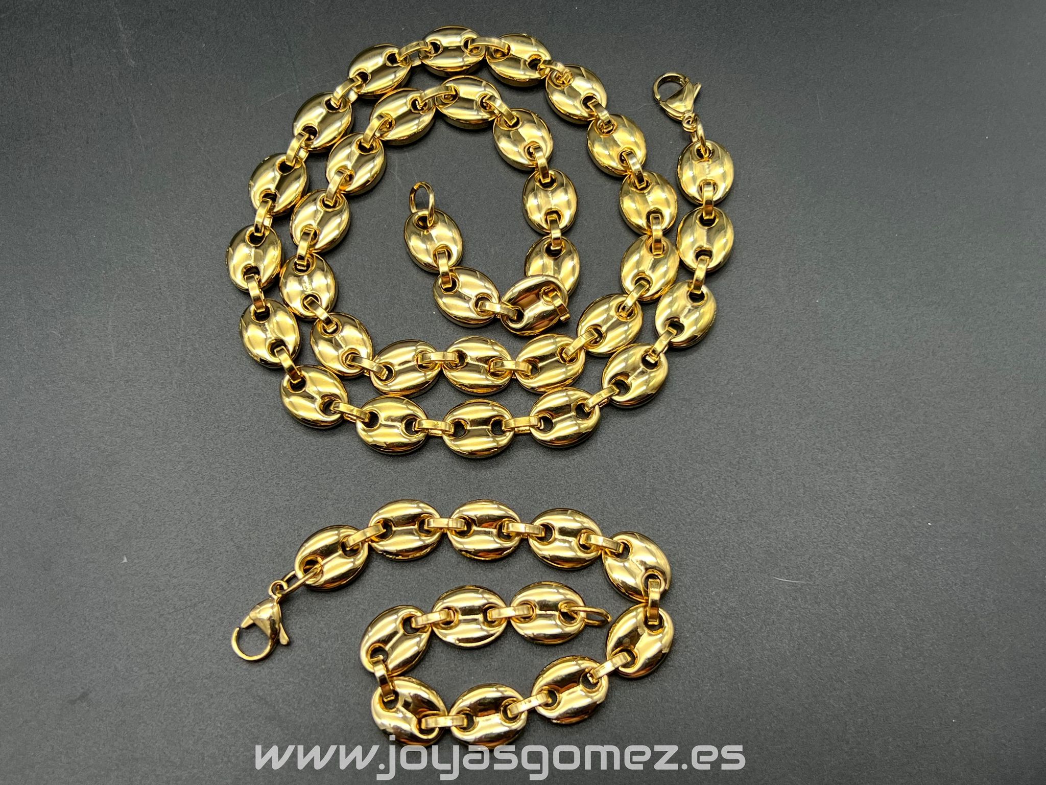 Cadena y pulsera granos café 11-acero 316L chapado oro 18k