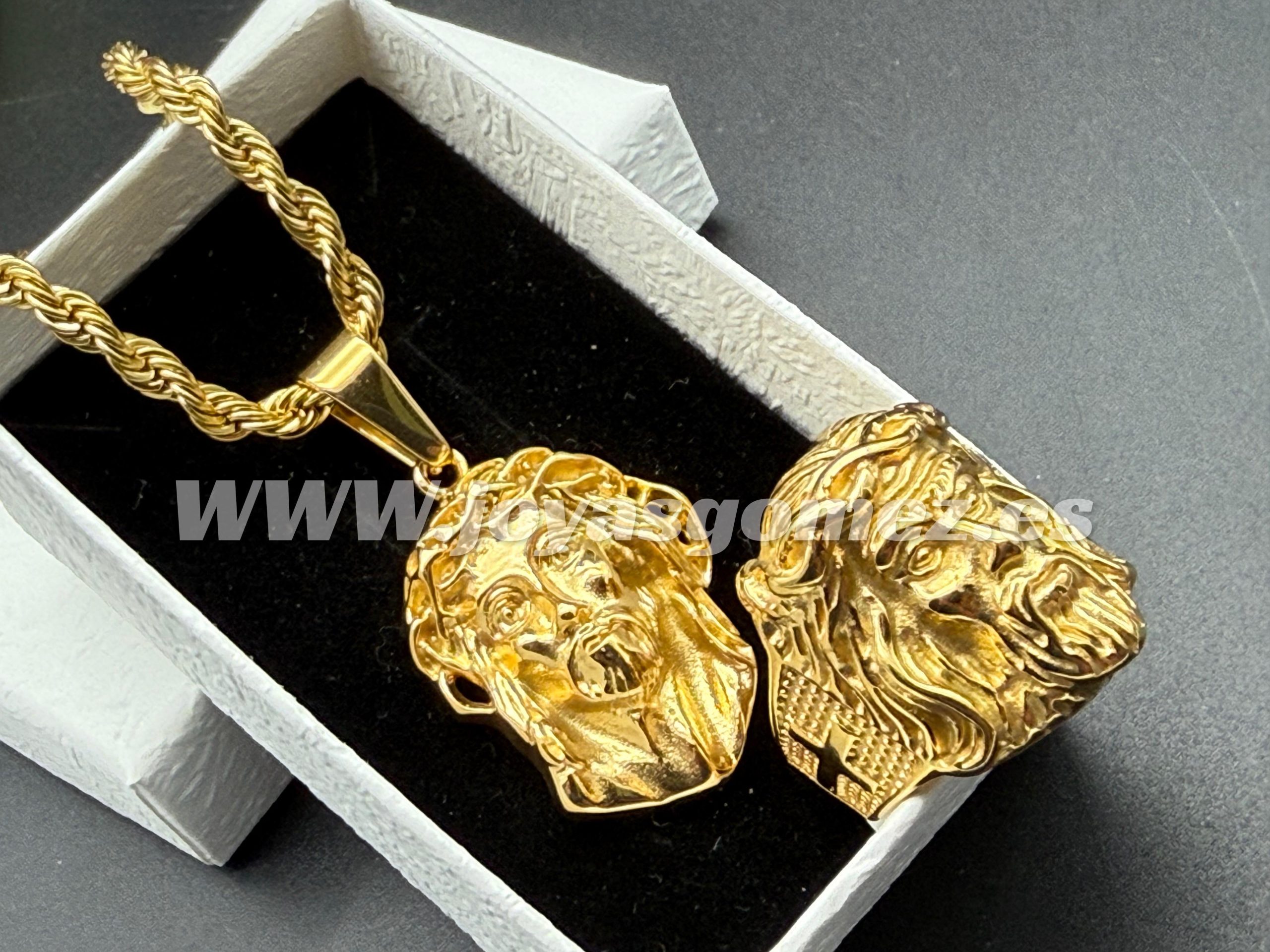Cordón 4*60 cm- colgante rostro cristo medidas 35 *25 mm – sello, acero 316L chapado oro 18k
