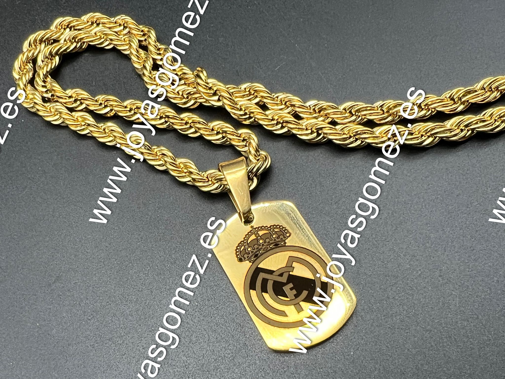 Cordón 6*60 cm + placa de tu equipo-acero 316L chapado oro 18k