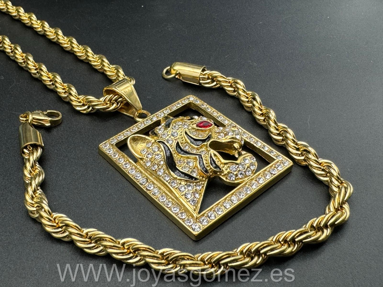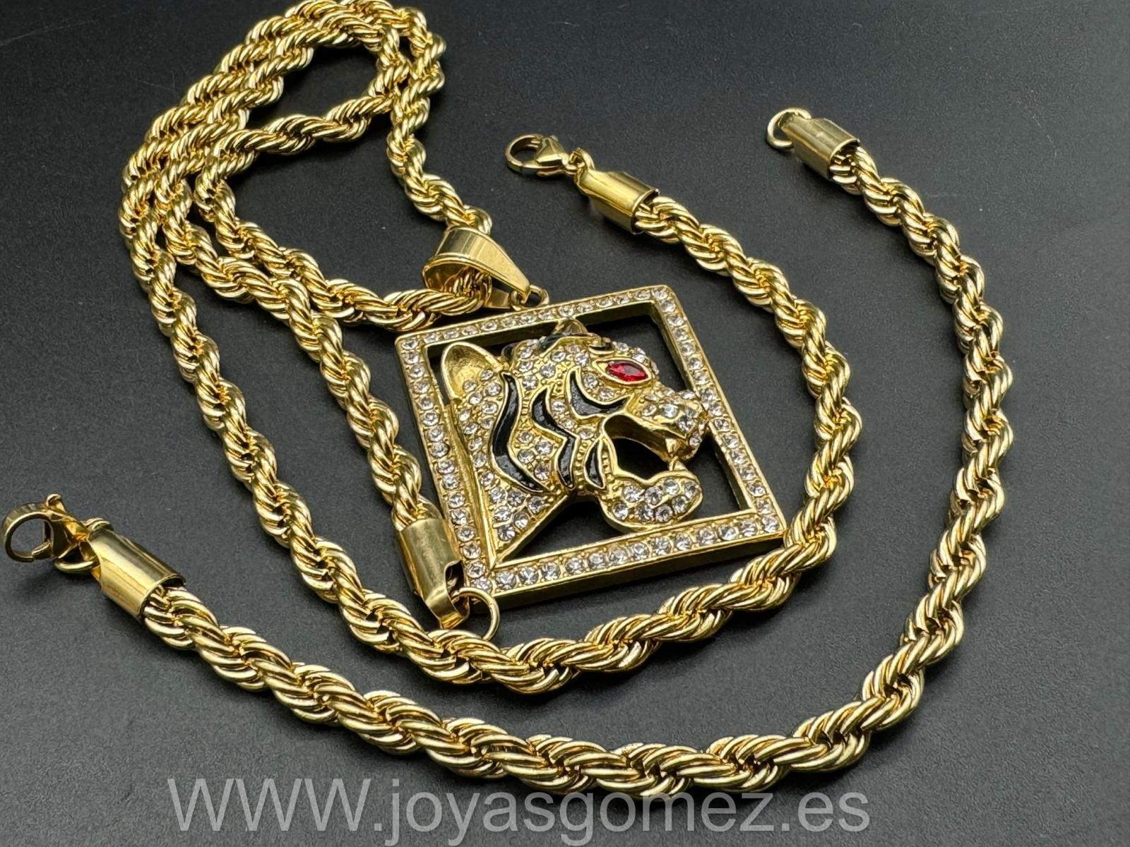 Cordón-pulsera 6 mm -Colgante tigre circonitas -circonitas,acero 316L chapado oro 18k