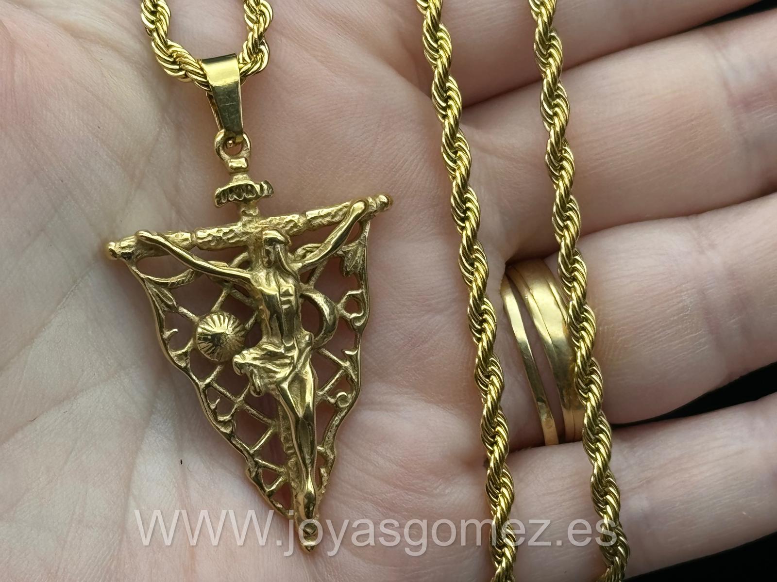 Crucifijo Inry (medida 4*3 cm) +Cordón 3mm*60cm, acero 316 l chapado oro 18k