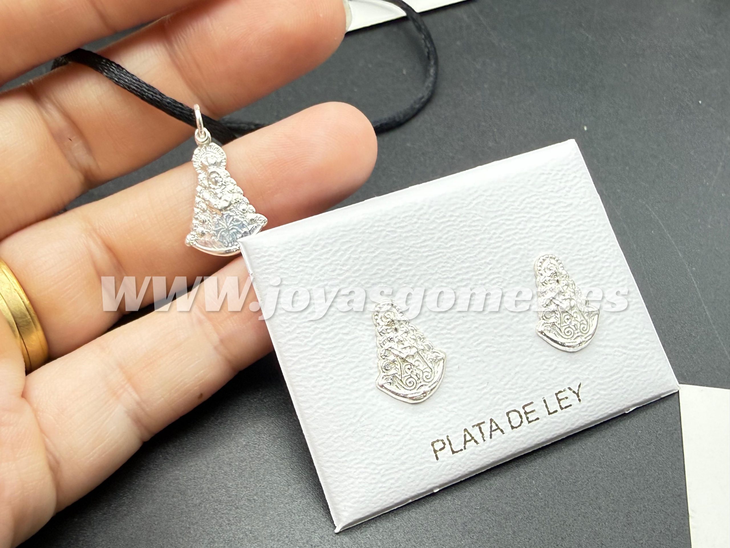 Gargantilla- cordón seda 40 cm- pendientes, VIRGEN DEL ROCÍO -plata de ley