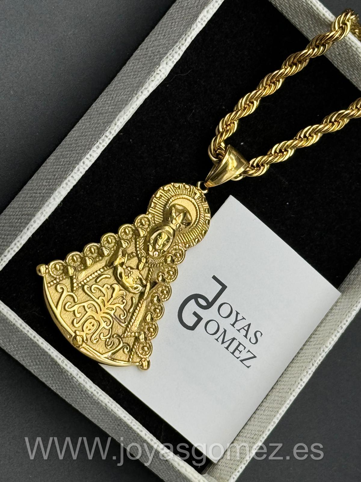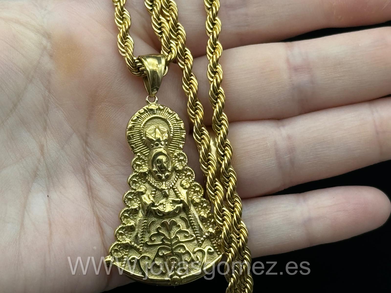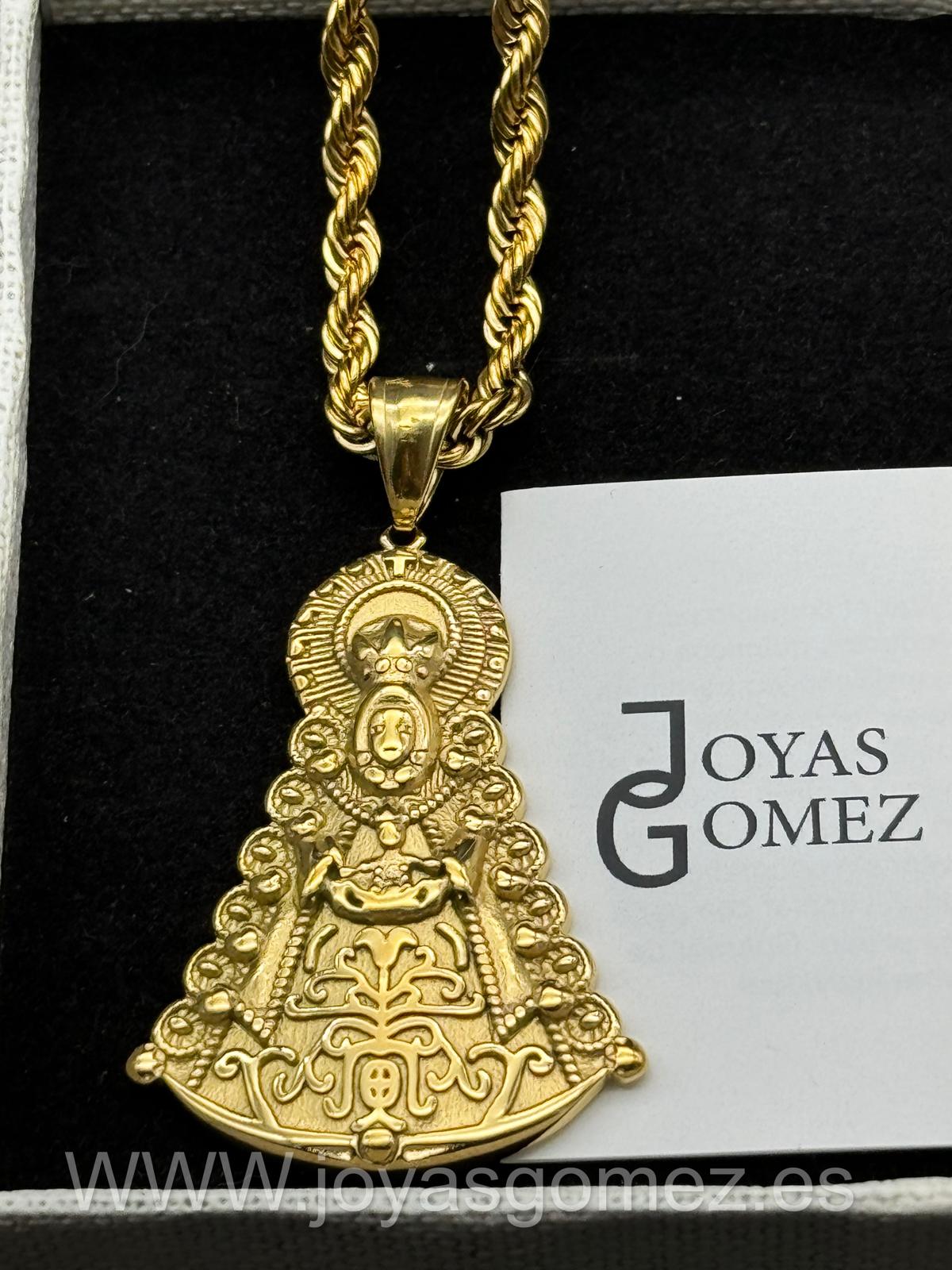 Medalla virgen del Rocío grande + Cordón 4 *60cm , acero 316L Chapado oro 18k.