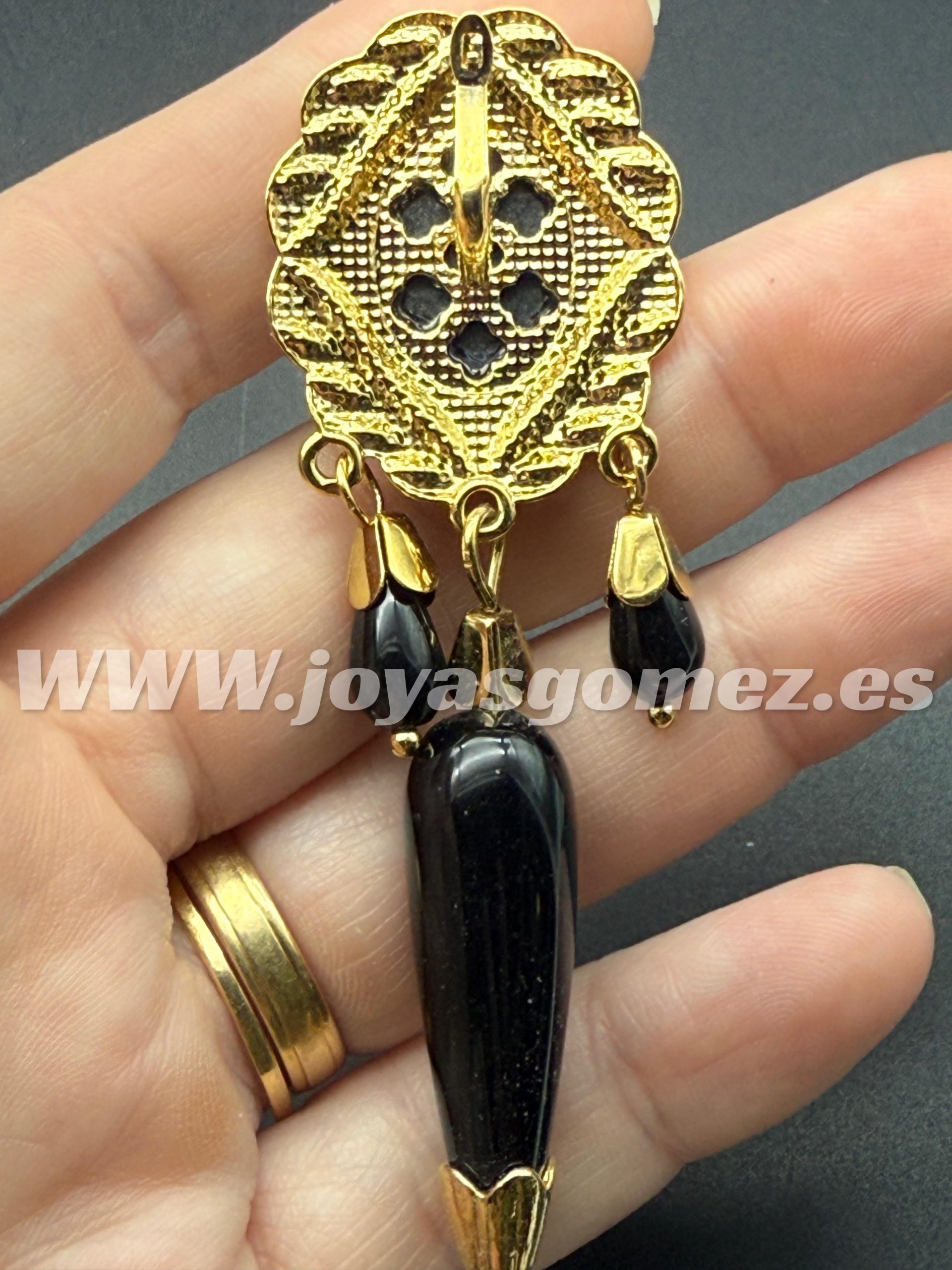 Corales pescaito-camafeo negro 8.5cm, acero 316L chapado oro 18k