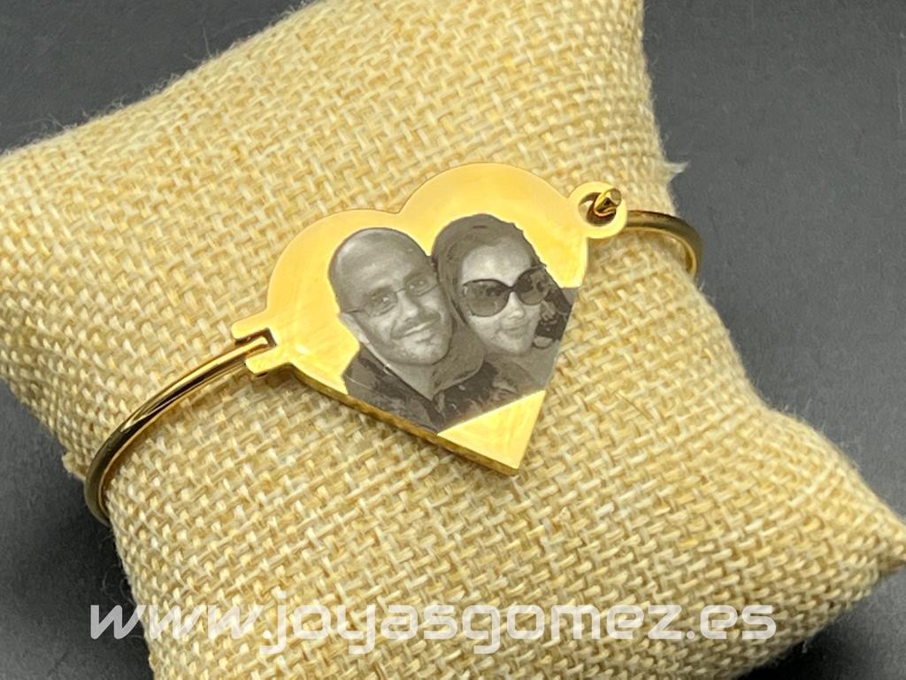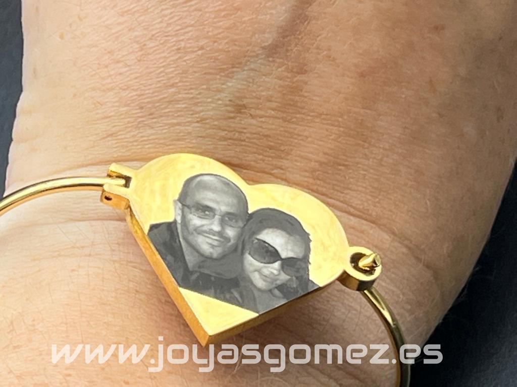 Pulsera foto grabación láser, acero 316L chapado oro 18k -OFERTAZO-