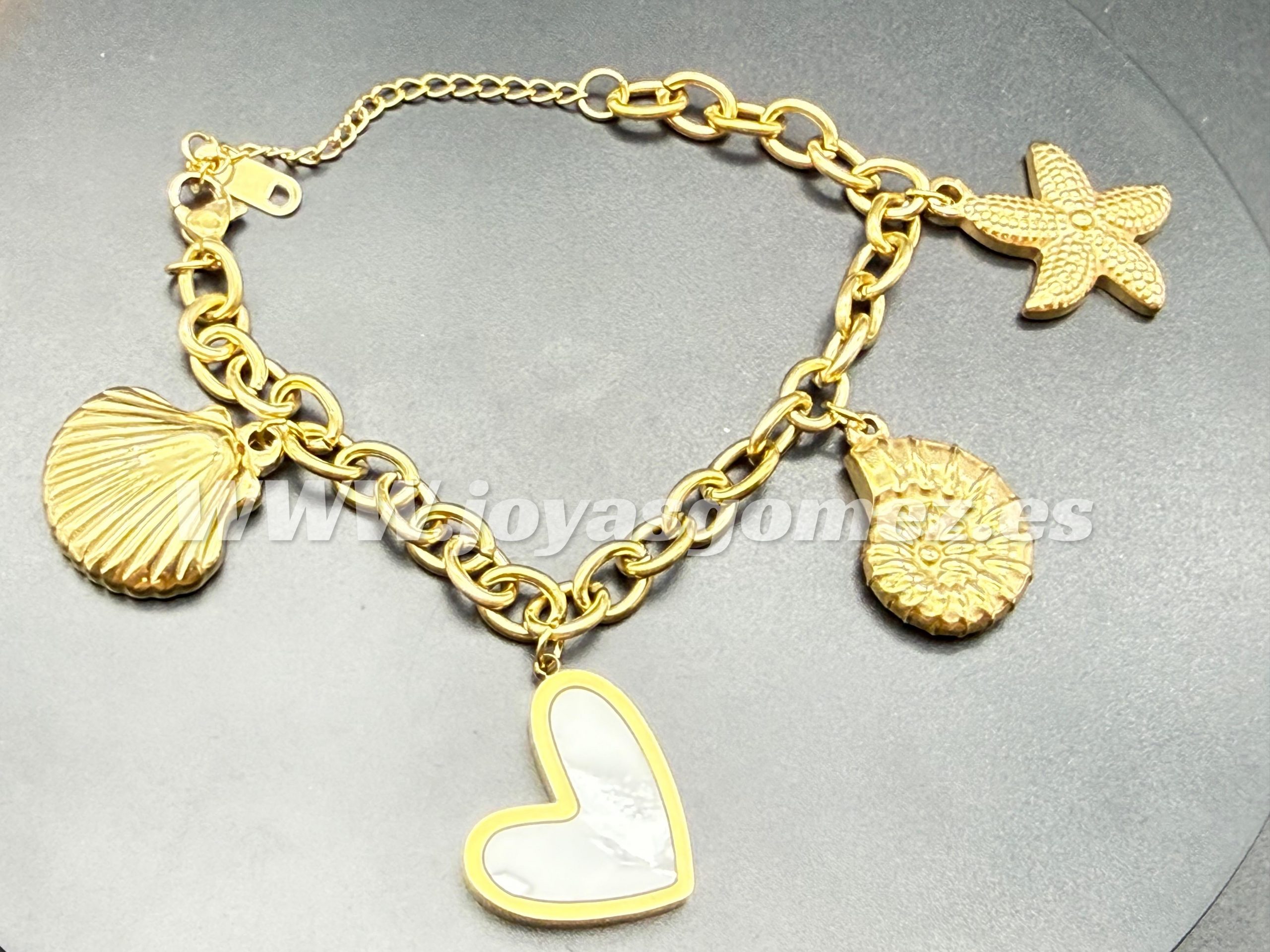 Pulsera motivos del mar, acero 316L chapado oro 18k