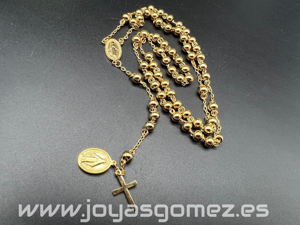 Rosario virgen Milagrosa 6 mm *77cm- acero 316 L chapado oro 18k