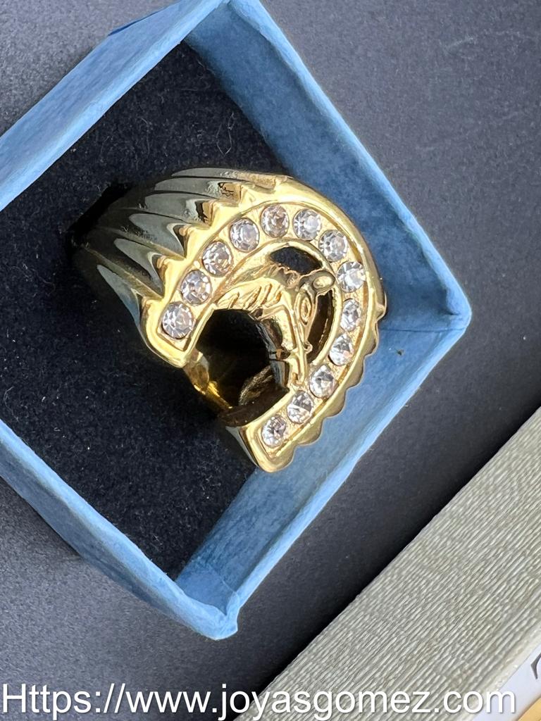 Sello herradura tallado circonitas, tallas 20,22,24,26,28 – acero 316L chapado oro18k
