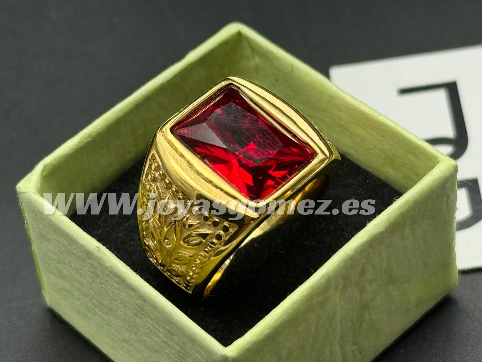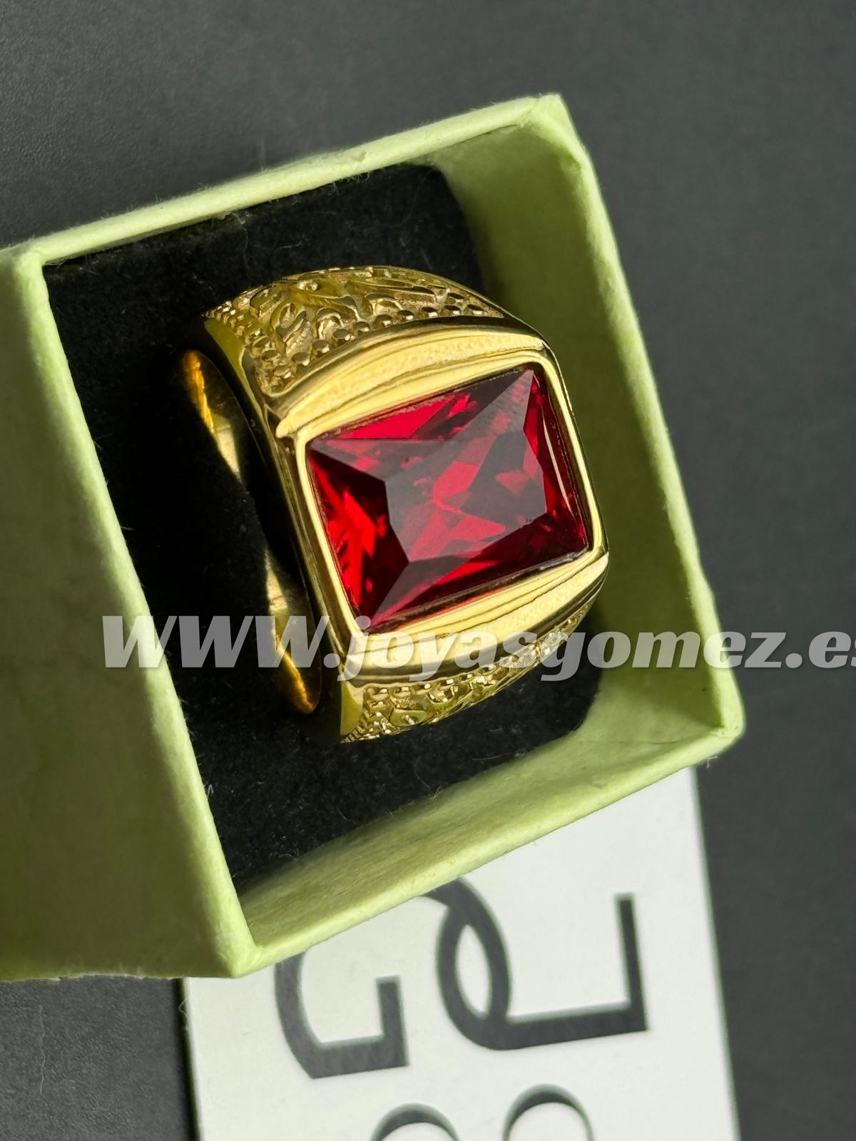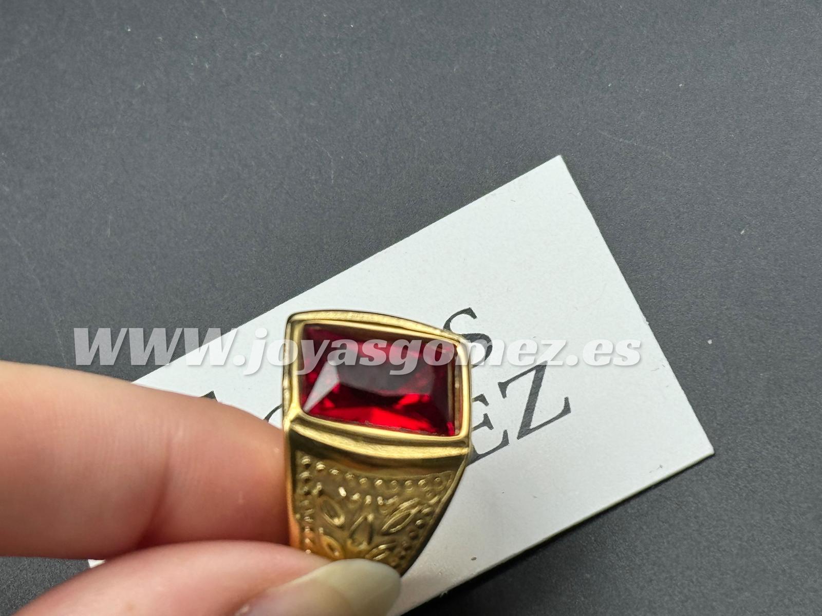 Sello labrado piedra roja, tallas 20- acero 316L chapado oro18k