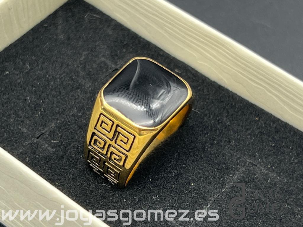 Sello piedra negra-greca, tallas 24-26-28-30, acero 316L chapado oro 18k