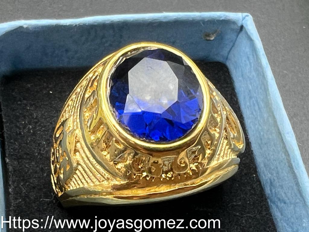 Sello piedra redonda azul, tallas 18, acero 316L chapado oro 18k