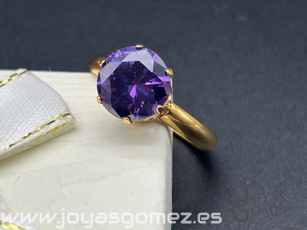Sortija piedra morada, tallas 20-22,acero 316L chapado oro 18k