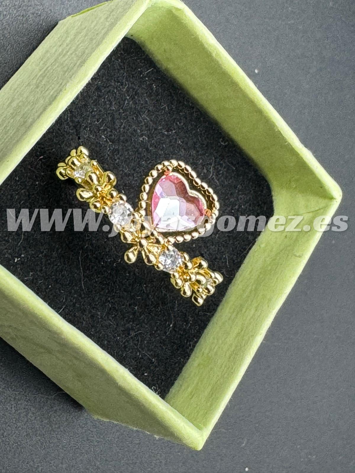 Sortija piedra ROSA, corona , acero 316L chapado oro 18k, talla 14