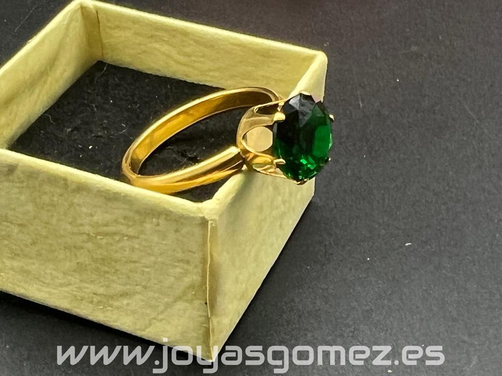 Sortija piedra verde , acero 316L chapado oro 18k, tallas 18-20-22